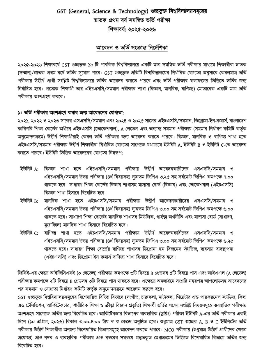 The GST Admission Circular 2025-26 was published by the University Grants Commission (UGC) and the Ministry of Education. This circular contains all the official rules, dates, and procedures for the admission test. You can find the official circular both as an image and in PDF format at below.