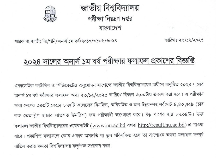 The Honours 1st Year Exam 2025 for the National University officially completed from August 24 to October 15, 2025. Now, students have been eagerly awaiting their result and marksheet. The examinations was held to across 344 centers and 876 colleges under National University Bangladesh.